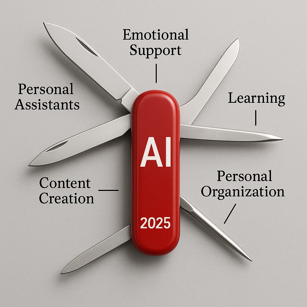 Artificial intelligence in 2025 has moved from novelty to necessity. It no longer exists as an abstract buzzword but as a quiet partner in the rhythms of ordinary life. It is, to borrow a metaphor, a Swiss Army Knife—compact, versatile, and always within reach. Each blade serves a purpose: one for planning, another for reflection, another for learning. The art of living with AI now lies not in owning more blades but in knowing which ones to open—and when to close them.